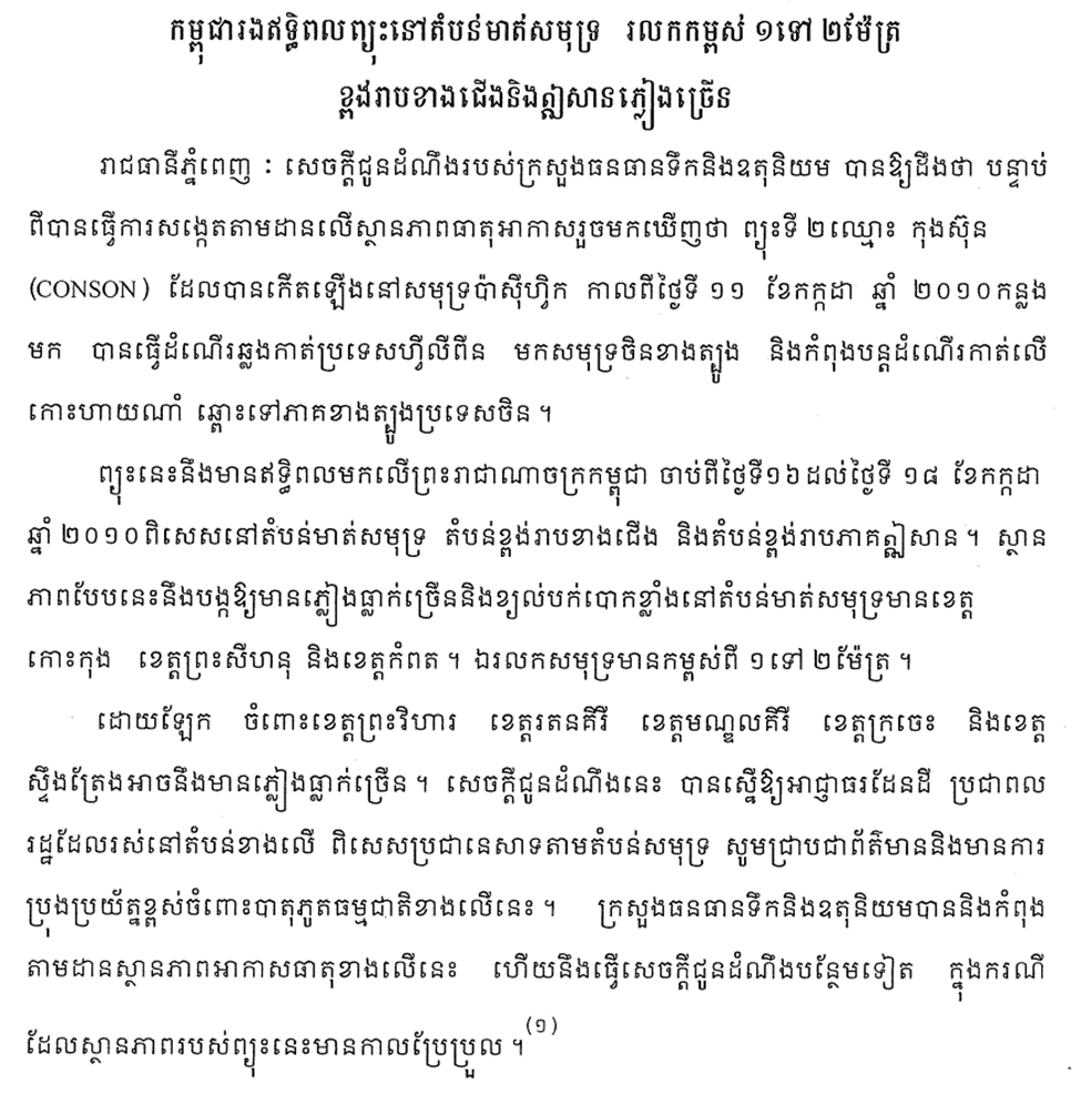 - កុងស៊ុន (ន) ឈ្មោះព្យុះបានកើតឡើងនៅសមុទ្រប៉ាស៊ីហ្វិក កាលពីថ្ងៃ១១ ខែកក្កដា ឆ្នាំ២០១០កន្លងមក ។
