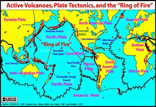 ភ្នំភ្លើងកើតមានឡើងតាមព្រំដែនជំនួបគ្នា ព្រំដែនបែកចេញនៃផ្លាកតិចតូនិច និងលើចំណុចក្ដៅនៃផែនដី។ ភ្នំភ្លើងជាច្រើនផ្ទះនៅតាមបណ្តោយទ្រនុងកណ្តាលមហាសមុទ្រជាកន្លែងដែលផ្លាកបែកចេញពីគ្នា។ កំអែភ្នំភ្លើងហូរចេញតាមស្នាមប្រេះមកលើបាតសមុទ្របន្តិចម្តងៗ បង្កើតបានជាភ្នំភ្លើងថ្មីៗ នៅតាមបណ្តោយជ្រលងស្មាមប្រេះ។ មានភ្នំភ្លើងជាច្រើនផ្ទុះនៅជិតព្រំដែនជំនួបគ្នាជាកន្លែងដែលផ្លាកមហាសមុទ្រធ្លាក់ចុះទៅក្នុងម៉ង់តូ។ នៅកន្លែងដែលផ្លាកមហាសមុទ្រពីរបុកគ្នា សិលាខ្លះដែលស្ថិតនៅពីលើផ្លាកធ្លាក់ចុះរលាយហើយបង្កើតបានជាម៉ាក់ម៉ា។ នៅពេលម៉ាក់ម៉ាជ្រៀបចេញតាមបាតមហាសមុទ្របង្កើតបានជាភ្នំភ្លើង។ ភ្នំភ្លើងខ្លះកើតពីចំណុចក្តៅដែលស្ថិតនៅក្នុងម៉ង់តូ។ ចំណុចក្តៅ គឺជាកន្លែងដែលរូបធាតុចេញពីម៉ង់តូស្ទុះឡើង ហើយរលាយបង្កើតបានជាម៉ាក់ម៉ា។