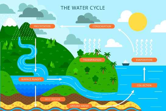 + វដ្តទឹកមានបីដំណាក់កាលសំខាន់ៗគឺ៖