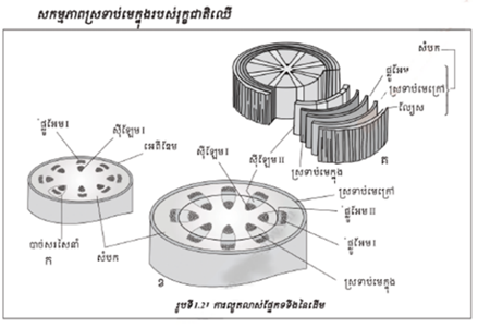 - កោសិកាខ្លះទៀតមិនធ្វើឯកទេសកម្មទេ វានៅតែធ្វើចំណែកមីតូសបន្ដទៀត។ កោសិកាដែលកើតពីចំណែកនៃមេជាលិកាធ្វើឯកទេសកម្ម ជាកោសិការោមជញ្ជក់ ជាលិកាដឹកនាំរុក្ខរស និងកោសិកាស្ដុកសារធាតុបម្រុង។