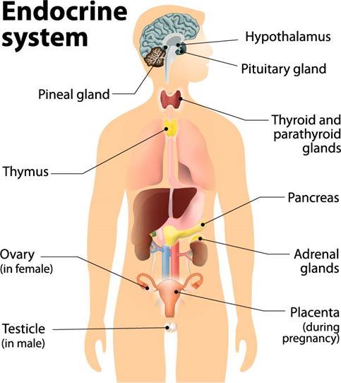 ចំពោះមនុស្ស ប្រព័ន្ធអង់ដូរគ្រីនកើតឡើងពីក្រពេញអង់ដូគ្រីនផ្សេងៗជាច្រើន ដូចជា អ៊ីប៉ូតាឡាមុស ក្រពេញទីរ៉ូអ៊ីត ក្រពេញប៉ារ៉ាទីរ៉ូអ៊ីត ក្រពេញទីមុស ក្រពេញលើតម្រងនោម លំពែង ក្រពេញភេទញី ក្រពេញភេទឈ្មោល...។