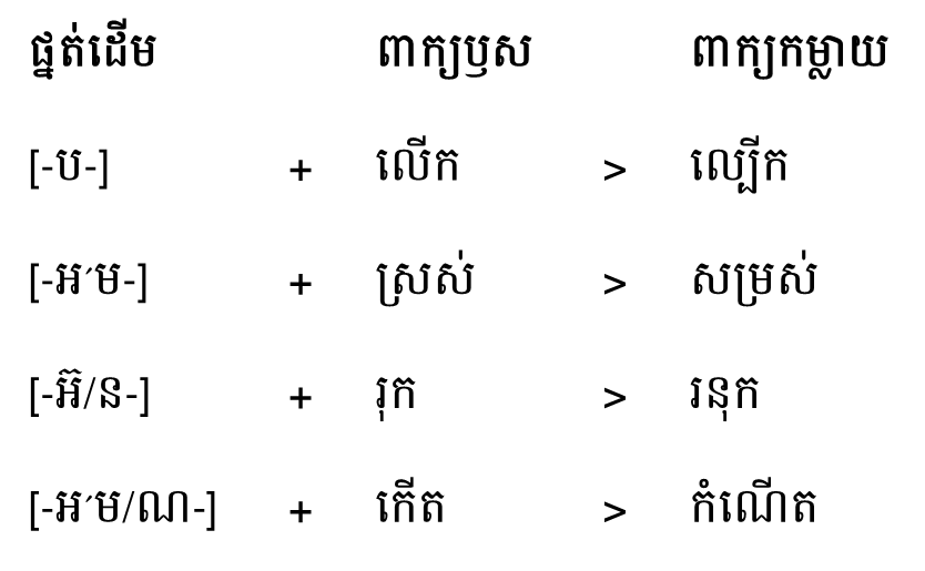 កម្លាយដោយផ្នត់ដើម៖ នៅក្នុងភាសាខ្មែរ គេចែកផ្នត់ដើមជា ៤ទម្រង់គឺ៖