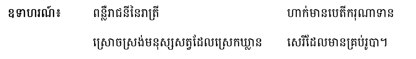 ឃ្លាថា “ពន្លឺ​រាជនីនៃរាត្រី” មានន័យថា “រស្មី​ស្ដេចស្រី​នៃពេលយប់” គឺកវី​ពោលសំដៅ​ដល់ពន្លឺព្រះចន្ទ​តែកវីមិនប្រើពាក្យ​ចំថា ពន្លឺ​លោកខែ​ ឬពន្លឺព្រះចន្ទចំៗតែម្ដងទេ​ លោកនិយាយពង្វាងថា “ពន្លឺរាជនី​នៃរាត្រី” ។