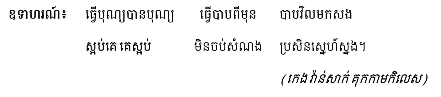 វិធីត្រឡប់ ជាបដិរូប​មួយបែប​ដែលស្ថិត​នៅត្រង់​ការដែល​កវីប្រើពាក្យឆ្លុះគ្នា ហើយន័យ​សេចក្ដី​ផ្សេងគ្នា​។