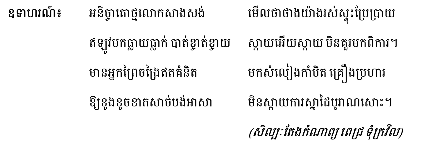 ◆ ១វគ្គ មាន៤ឃ្លា, ១ឃ្លា មាន ៨ព្យាង្គ