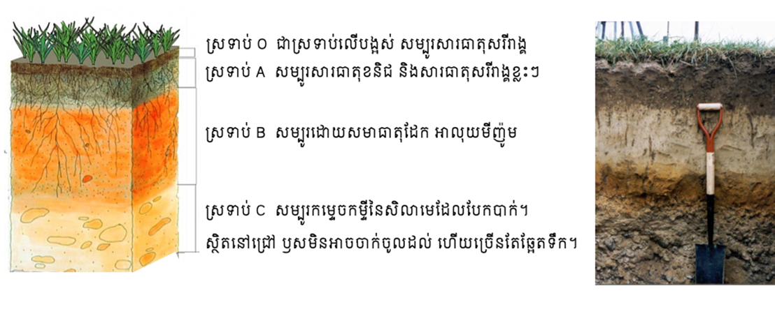 ការស្តុកទឹក ការចេញចូលខ្យល់ និងជីជាតិដី ជាដើម។