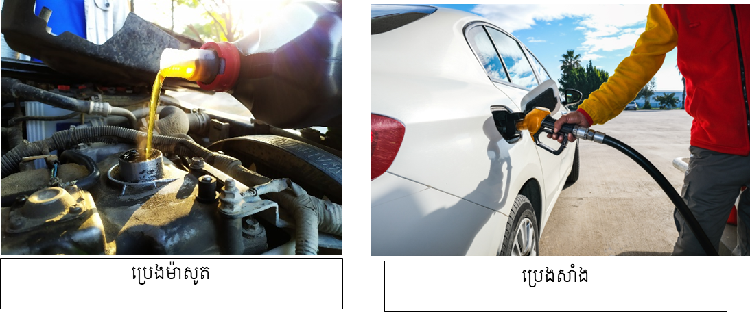 + គេប្រើប្រាស់ឥន្ធនៈផូស៊ីលដូចជា៖