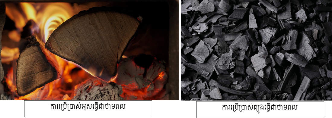 Fuel) : ធាតុឆេះដែលបានមកពីការធ្វើប្រព្រឹត្តិកម្មជីវម៉ាសរុក្ខជាតិ។