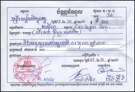 ◊ បង្កាន់ដៃ ជាឯកសារដែលឆ្លុះបញ្ចាំងពីចំនួនទឹកប្រាក់ ដែលអតិថិជនបានបង់ប្រាក់។