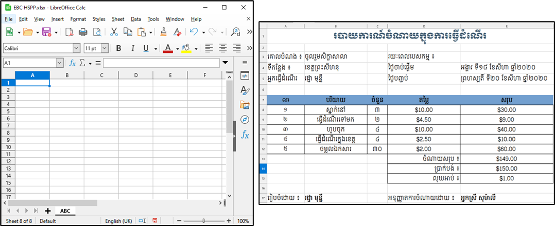 ◊ ការរៀបចំ និងធ្វើទ្រង់ទ្រាយរបាយការណ៍ចំណាយ និងវិក្កយបត្រល្អត្រឹមត្រូវដោយប្រើកម្មវិធីសៀវភៅបញ្ជី។