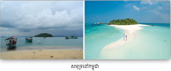 -   សមុទ្រកម្ពុជាយើងជាប្រភេទសមុទ្រស្ងប់ (ស្ងប់នៅរដូវប្រាំង រញ្ជួយបន្តិចបន្តួចនៅរដូវវស្សា)