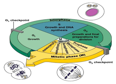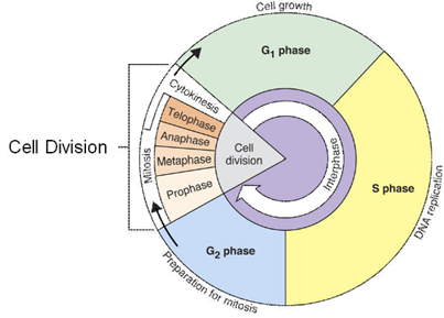 គេចែកវដ្តកោសិកាជាពីរដំណាក់កាលគឺ ចន្លោះវគ្គ និងចំណែកកោសិកា។ វគ្គដែលកោសិកាលូតលាស់មុននិងចែកខ្លួន។ ចន្លោះវគ្គចែកចេញជាវគ្គតូចៗដូចជា៖ វគ្គ G1 (Gap1) វគ្គ S (Synthesis) និងវគ្គ G2 (Gap2) ។ វគ្គ G1 និង G2 ជាវគ្គដែលកោសិកាលូតលាស់ដើម្បីត្រៀមខ្លួនធ្វើចំណែក។ ឯវគ្គ S ជាវគ្គដែល ADN ស្វ័យដំឡើងទ្វេ។
