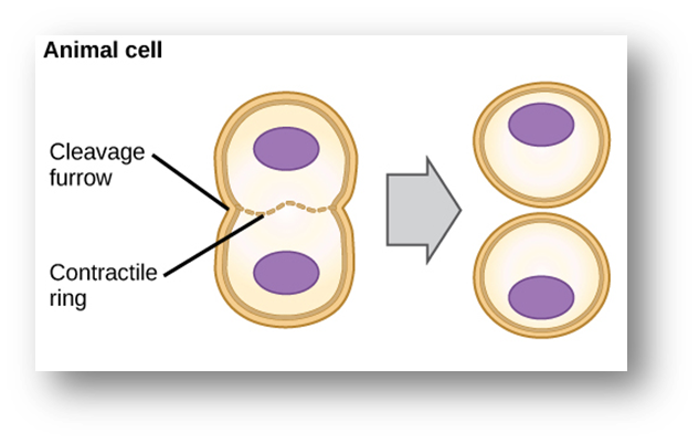 ចំពោះកោសិកាសត្វចំណែកស៊ីតូប្លាសប្រព្រឹត្តទៅដោយការស្តួចនៃផ្នែកកណ្តាលនៅត្រង់ចន្លោះណ្វៃយ៉ូកូនទាំងពីរដែលបង្កើតបានជាកោសិកាកូនពីរ។ ចំពោះកោសិការុក្ខជាតិ ចំណែកស៊ីតូប្លាសប្រព្រឹត្តទៅដោយការលេចឡើងនូវ បន្ទះកោសិកាត្រង់ប្លង់អេក្វាទ័រដែលនៅចន្លោះណ្វៃយ៉ូកូនទាំងពីរ។