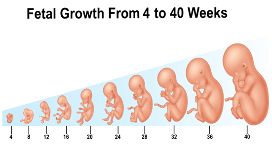 ចុងខែទី១ នៃការលូតលាស់ អំប្រ៊ីយ៉ុងក្លាយទៅជាគភ៌ដែលភាគច្រើនជាលិកានិងសរីរាង្គសំខាន់ៗត្រូវបានកកើតឡើង។ រយ:ពេលនេះទងសុកបានកើតឡើង។ ក្នុងទងសុក មានសរសៃអាកទែពីរ និងសរសៃវ៉ែនមួយដែលភ្ជាប់គភ៌ទៅនឹងសុក។ ប្រព័ន្ធសាច់ដុំរបស់គភ៌លូតលាស់យ៉ាងល្អ។ គភ៌មានប្រវែងប្រហែល 8cm និងទម្ងន់ប្រហែល 28g ។ ខែទី 4 ទី 5 និងទី 6 ក្រោយពេលបង្កកំណើត ជាលិការបស់គភ៌ក្លាយជាមានលក្ខណៈស្មុកស្មាញ និងមានឯកទេសកម្មព្រមទាំងចាប់ផ្ដើមបំពេញនាទីរៀងៗខ្លួន។ បេះដូងរបស់គភ៌ប្រែជាខ្លាំងល្មមគ្រប់គ្រាន់អាចស្តាប់ឮដោយប្រដាប់ស្ដាប់ចង្វាក់បេះដូង (Stethoscope) ។ ឆ្អឹងជំនួសដោយឆ្អឹងខ្ចីដែលបង្កើតបានជាគ្រោងឆ្អឹងដំបូង។ ស្រទាប់រោមទន់ៗដុះលូតលាស់នៅលើស្បែករបស់គភ៌។ ដោយគភ៌ កើនទំហំពោះម្តាយក៏ឡើងប៉ោងតម្រូវតាមនោះដែរ។ ម្តាយចាប់ផ្ដើមមានអារម្មណ៍ថាកម្រើក។ នៅចុងខែទី 6 ក៏មានប្រវែង 35cm និងទម្ងន់ប្រហែល 700g ។