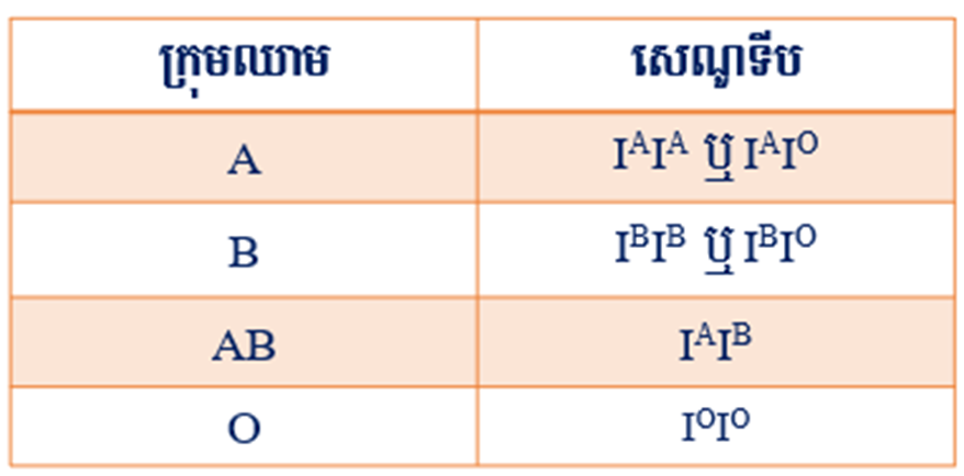 ឧទាហរណ៍ទី២៖ ចំពោះមនុស្សសែនកំណត់លក្ខណៈក្រុមឈាមក្នុងប្រព័ន្ធ (ABO) មានអាឡែលបី :