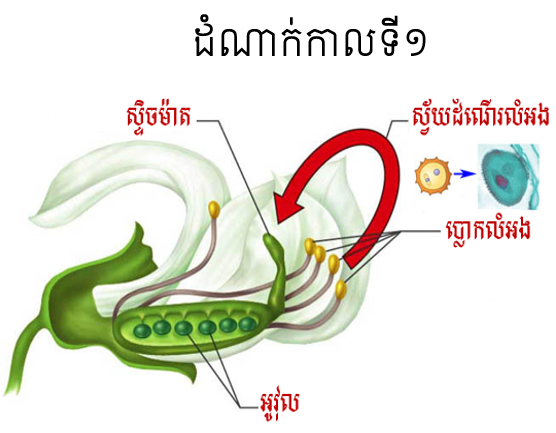 • ដំណាក់កាលទី១៖ ទុកសណ្ដែកព័រឱ្យស្វ័យបង្កកំណើត ពីរ ឬ បី ជំនាន់។