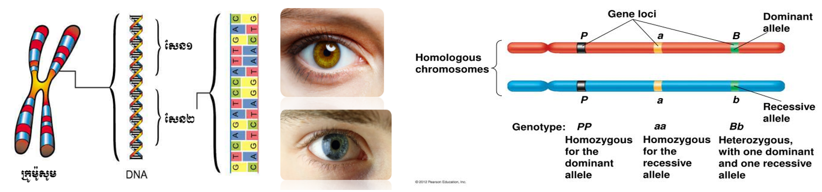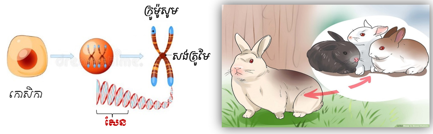លក្ខណៈនីមួយៗកំណត់ដោយកត្តាតំណពូជ។ នៅក្នុងកោសិកានីមួយៗនៃសារពាង្គកាយ ចំពោះលក្ខណៈមួយមានកត្តាតំណពូជពីរ។ តើសែន (Gene) ជាអ្វី ? សែន (Gene) ជាអង្កត់មួយរបស់ DNA ដែលផ្ទុកព័ត៌មានសេនេទិចសម្រាប់កំណត់លក្ខណៈមួយ។ ឧទាហរណ៍ លក្ខណៈសម្បុរខ្មៅ សម្បុរស សក់រួញ សក់ត្រង់ ភ្នែកធំ ភ្នែកតូច...។