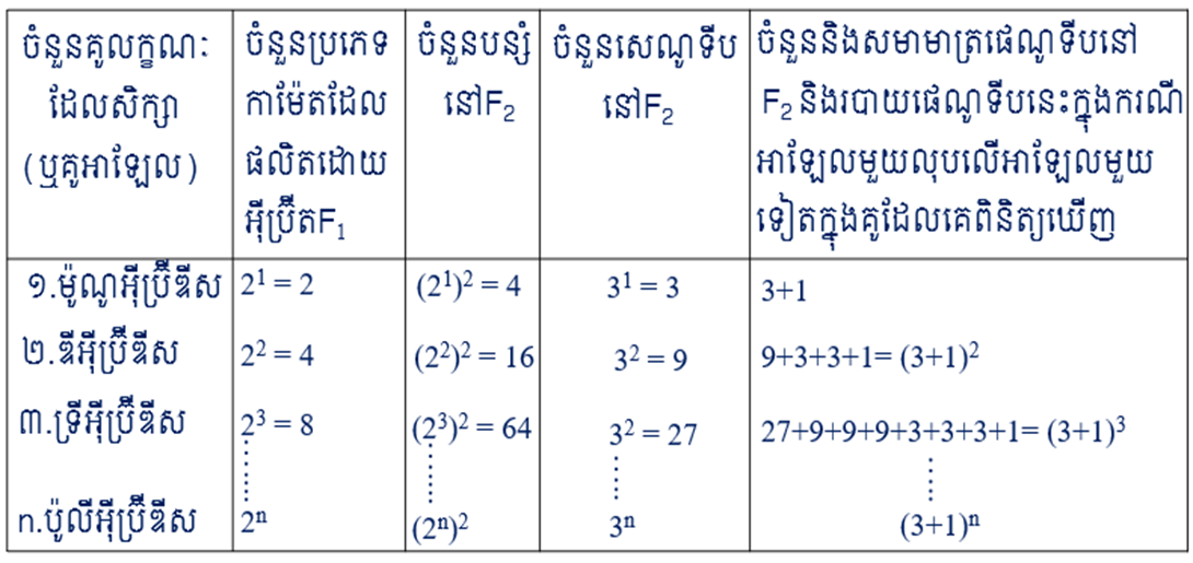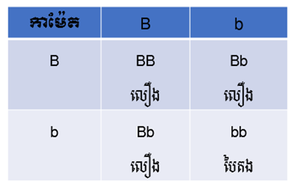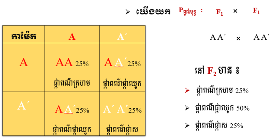 ក្នុងការបង្កាត់ខាងលើគេសង្កេតឃើញថា៖