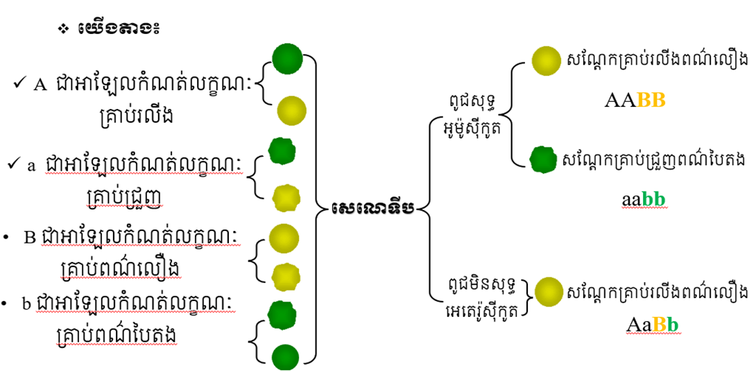• តាង b ជាអាឡែលកំណត់លក្ខណៈគ្រាប់បៃតង។