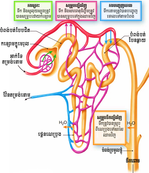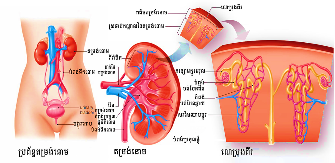 ពំនុះតម្រងនោមមានបីបផ្នែកគឺ៖