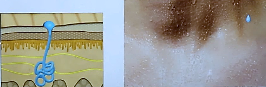 ការបែកញើសក៏ជួយដកយកកម្តៅលើសចេញដែរ។ ញើសភាគច្រើនមានទឹក ៩៩% និង១% ជាល្បាយនៃអំបិល អាស៊ីត និងកាកសំណល់។ ស្បែកមានក្រពេញញើសប្រហែល ១០០/១សង់ទីម៉ែត្រការេ។
