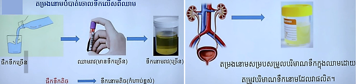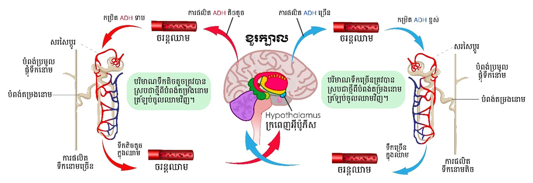 តម្រង់នោមជាសរីរាង្គសំខាន់នៃថេរលំនឹង។ តម្រងនោមសម្របសម្រួលបរិមាណទឹកក្នុងឈាមដោយតម្រូវបរិមាណទឹកនោមដែលវាផលិត។