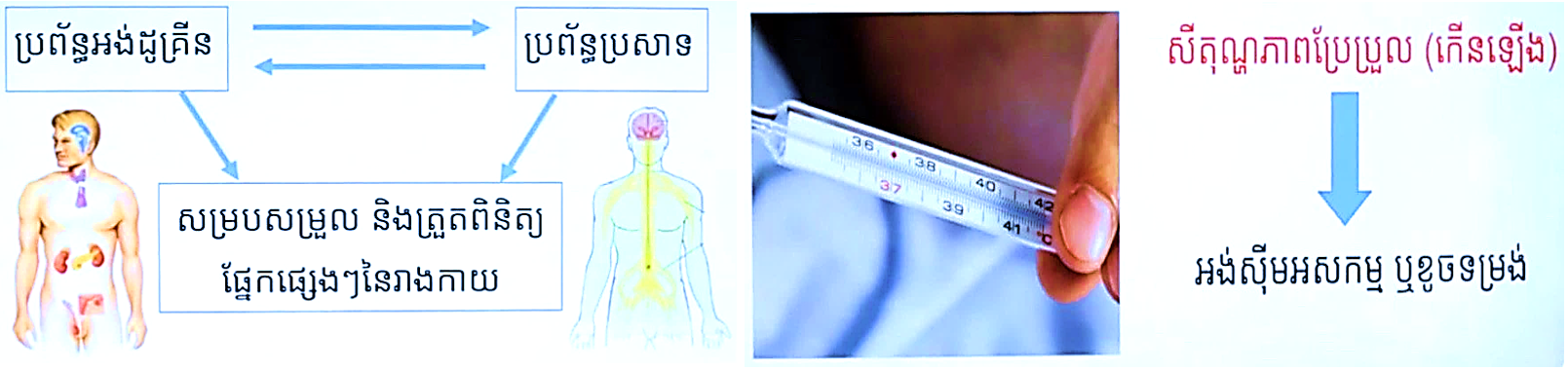 ការប្រែប្រួលក្នុងឈាមបណ្តាលឱ្យមានការប្រែប្រួលមជ្ឈដ្ឋានខាងក្នុងសារពាង្គកាយ។ ថេរលំនឹង ជាការរក្សាមជ្ឈដ្ឋានខាងក្នុងសារពាង្គកាយឱ្យនៅនឹងមិនប្រែប្រួល។ ប្រព័ន្ធប្រសាទសម្របសម្រួល និងបញ្ជាឱ្យមានលំហូរនៃអរម៉ូនអាដ្រេណាលីន។ការបញ្ចេញអរម៉ូនអាដ្រេណាលីនពីក្រពេញអង់ដូគ្រីនធ្វើឱ្យរាងកាយត្រៀមខ្លួនធ្វើសកម្មភាព (បេះដូងលោតញាប់ និងចង្វាក់ដង្ហើមលឿនជាដើម) ។ ការរក្សាសីតុណ្ហភាពកម្រិត pH និងប៉ូតង់ស្យែលទឹកក្នុងសារពាង្គកាយគឺចាំបាច់ណាស់។ដូចនេះសមាសភាគក្នុងជាលិការាវត្រូវស្ថិតក្នុងដែនកំណត់ជាក់លាក់។